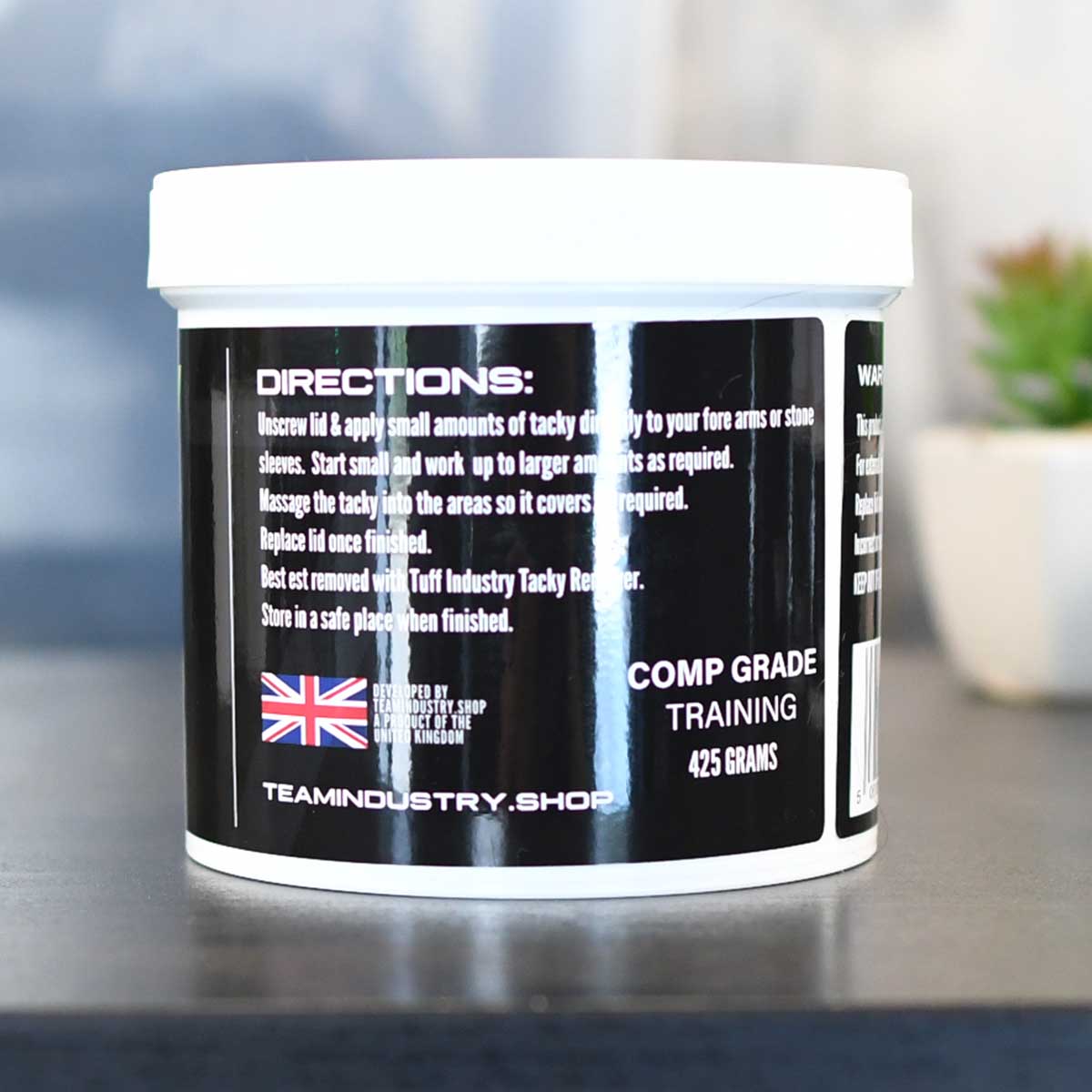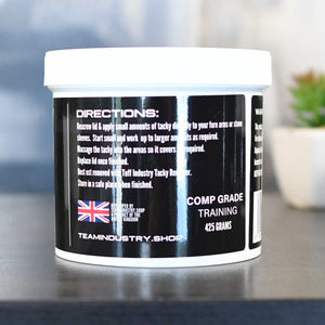 Team Industry strongman tacky is available in two grades, training and competition. The competition blend is quite an extreme mix and will take some time to make useable in the cooler climate months.  It will however provide a huge amount of grip once at working temperature and applied to your fore arms correctly.