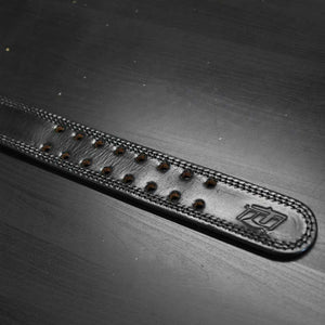 Our Team Industry logo is embossed on the back of the belt and our crest logo embossed on the leading edge.  With all black metal work and stitching this is simply an all time classic.