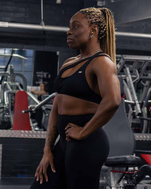 This bra features an open back allowing your lats to pop while supporting you in all the right places.