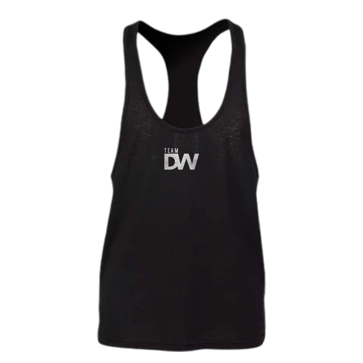 The Team DW stringer vest isa classic piece of bodybuilding clothing. It gets its name from the thin straps, alike to string, that run over the shoulders and have a Y design that emphasises both the arm, back and shoulder muscles.